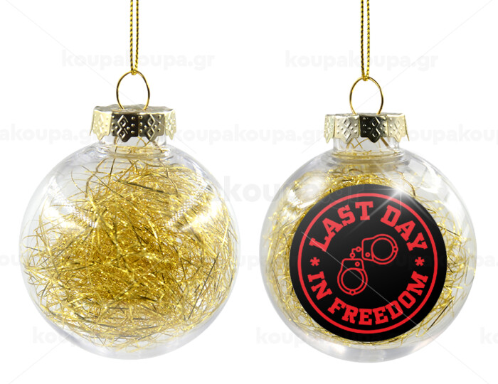 Last day freedom, Transparent Christmas tree ball ornament with gold filling 8cm