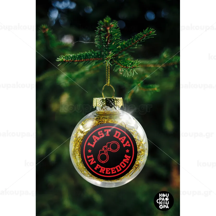 Last day freedom, Transparent Christmas tree ball ornament with gold filling 8cm