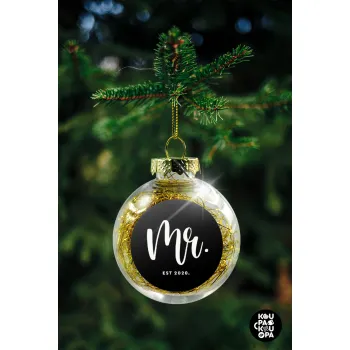 Mr & Mrs (Mr), Transparent Christmas tree ball ornament with gold filling 8cm
