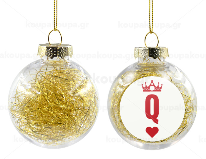 Queen, Transparent Christmas tree ball ornament with gold filling 8cm