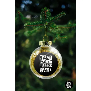 Save Water, Drink RAKI, Transparent Christmas tree ball ornament with gold filling 8cm