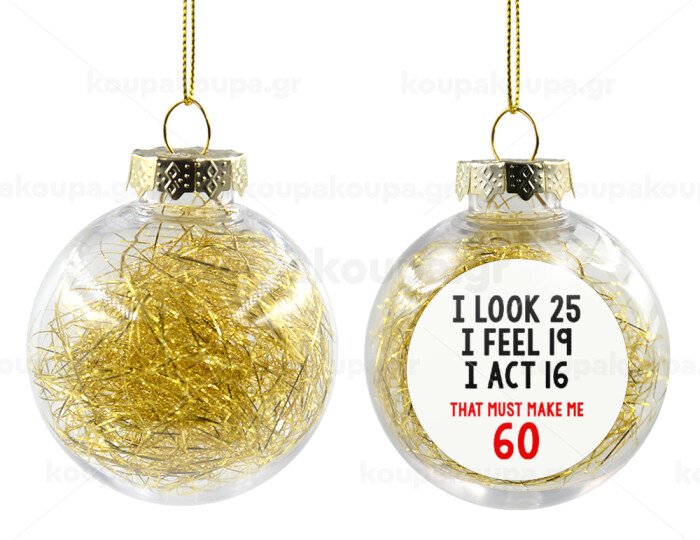 I look, i feel, i act..., Transparent Christmas tree ball ornament with gold filling 8cm