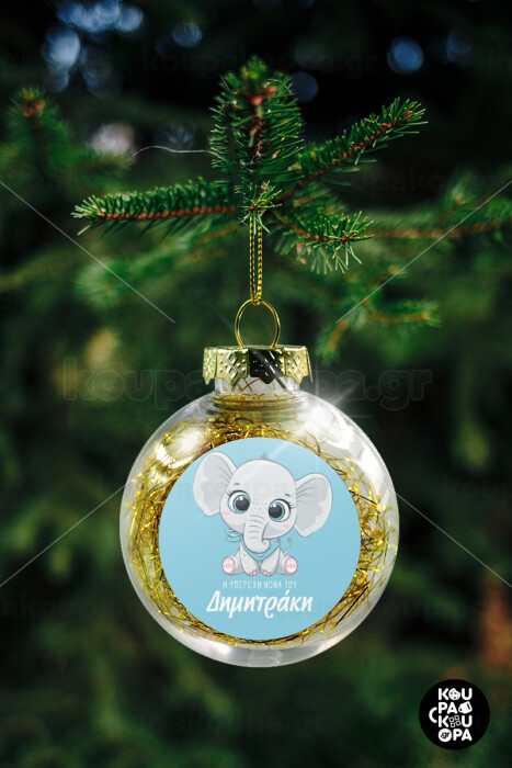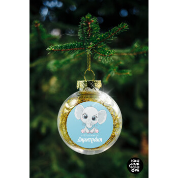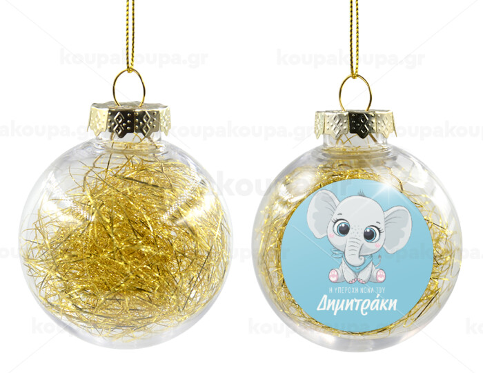 Η νονά μου, ελεφαντάκι γαλάζιο, Transparent Christmas tree ball ornament with gold filling 8cm