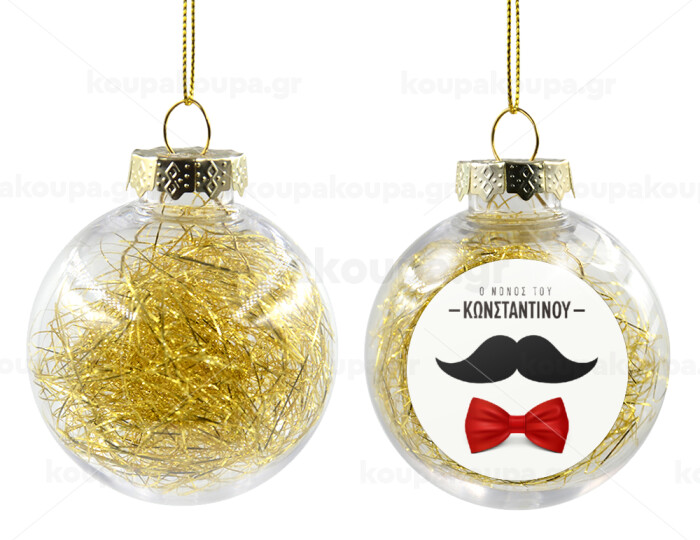 Ο νονός μου, μουστάκι με παπιγιόν, Transparent Christmas tree ball ornament with gold filling 8cm