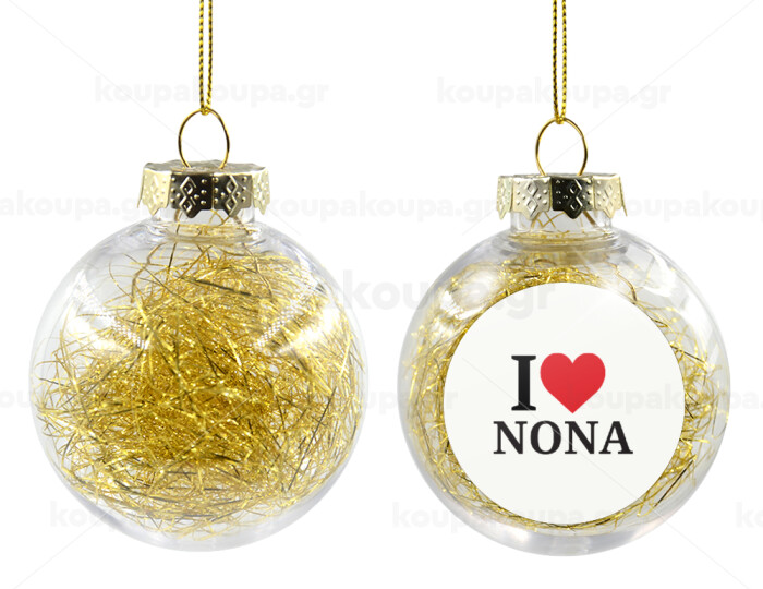 I Love ΝΟΝΑ, Transparent Christmas tree ball ornament with gold filling 8cm