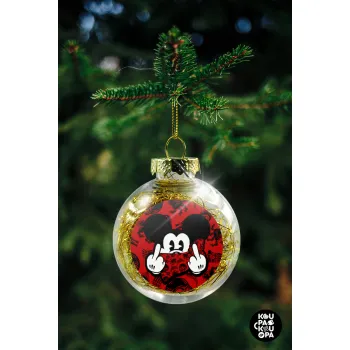 Mickey the fingers, Transparent Christmas tree ball ornament with gold filling 8cm
