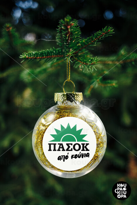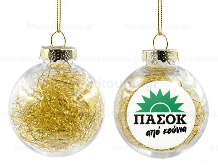 ΠΑΣΟΚ από κούνια, Transparent Christmas tree ball ornament with gold filling 8cm