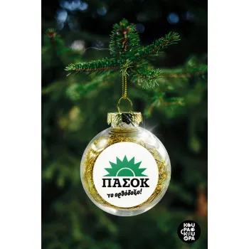 PASOK the orthodoxo, Transparent Christmas tree ball ornament with gold filling 8cm