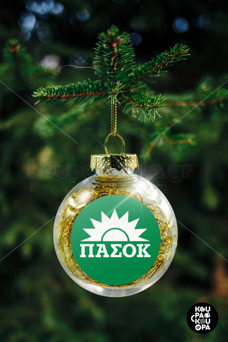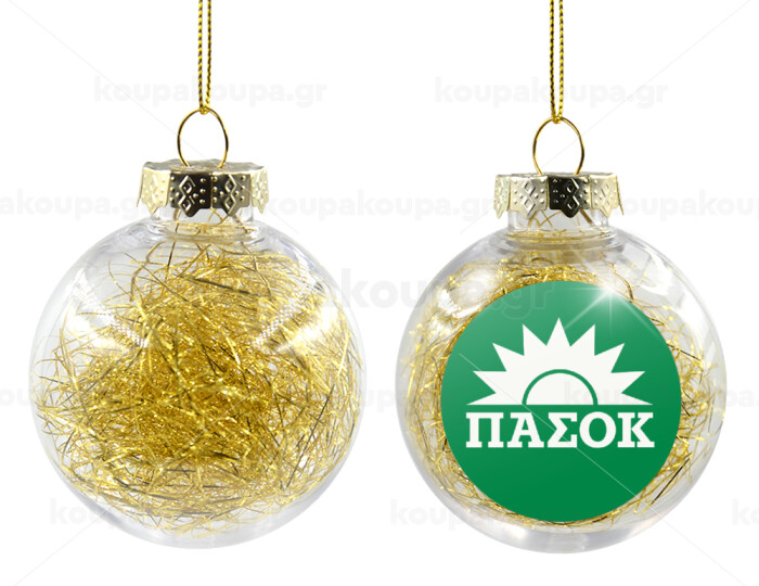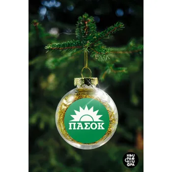 PASOK Green/White, Transparent Christmas tree ball ornament with gold filling 8cm