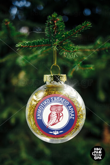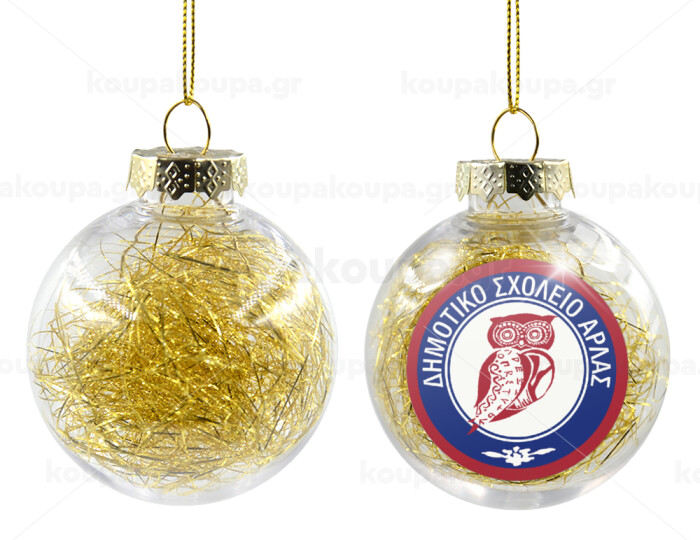 Έμβλημα Σχολικό κουκουβάγια μπορντό, Transparent Christmas tree ball ornament with gold filling 8cm