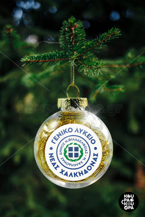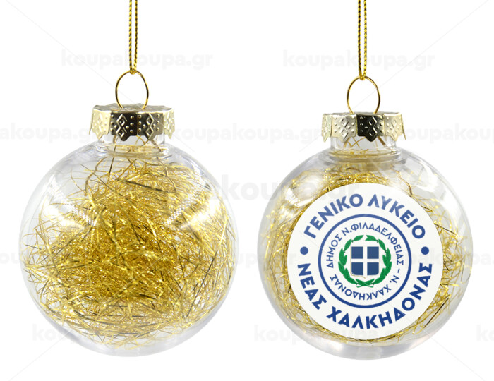 Έμβλημα Σχολικό με δάφνες, Transparent Christmas tree ball ornament with gold filling 8cm