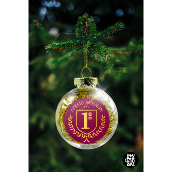 Έμβλημα Σχολικό μπορντό, Transparent Christmas tree ball ornament with gold filling 8cm