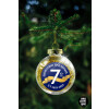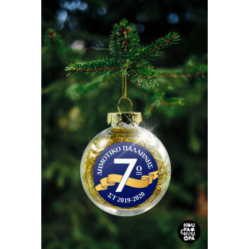Σχολική μπλε με κορδέλα, Transparent Christmas tree ball ornament with gold filling 8cm