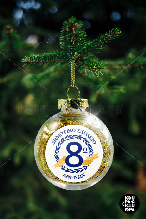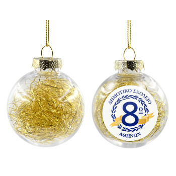 Σχολικό σήμα κορδέλα, Transparent Christmas tree ball ornament with gold filling 8cm
