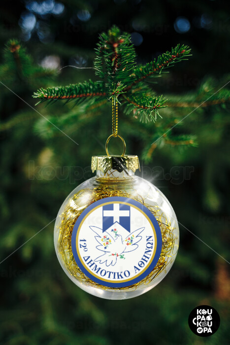 Σχολικό σήμα περιστέρι με δάφνες, Transparent Christmas tree ball ornament with gold filling 8cm