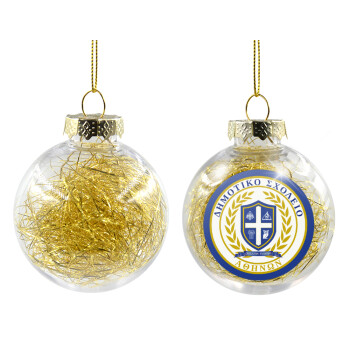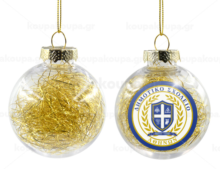 Σχολικό σήμα, Transparent Christmas tree ball ornament with gold filling 8cm