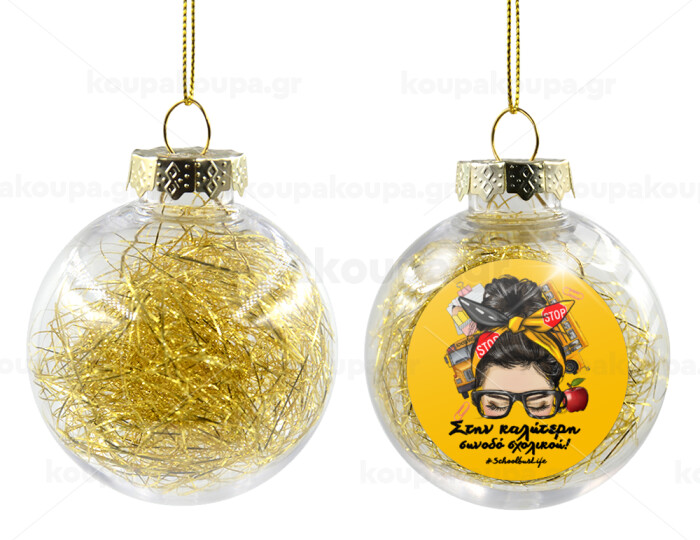 Στην καλύτερη συνοδό σχολικού!, Transparent Christmas tree ball ornament with gold filling 8cm