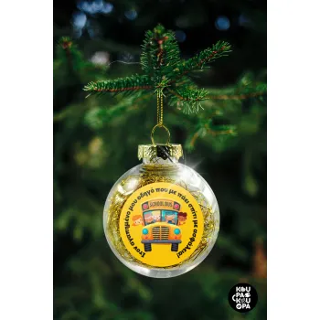 Στον αγαπημένο μου οδηγό που με πάει σπίτι με ασφάλεια!, Transparent Christmas tree ball ornament with gold filling 8cm