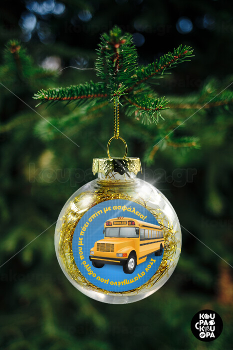 Στον αγαπημένο μου οδηγό σχολικού!, Transparent Christmas tree ball ornament with gold filling 8cm