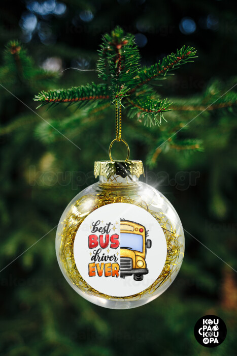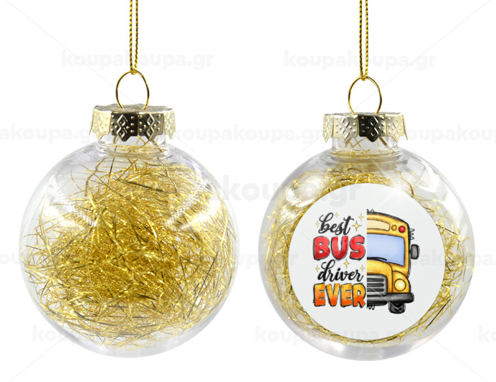 Best bus driver ever!, Transparent Christmas tree ball ornament with gold filling 8cm