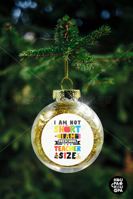 I Am Not Short I Am Preschool Teacher Size, Transparent Christmas tree ball ornament with gold filling 8cm