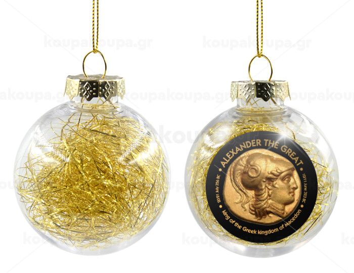 Alexander the Great, Transparent Christmas tree ball ornament with gold filling 8cm