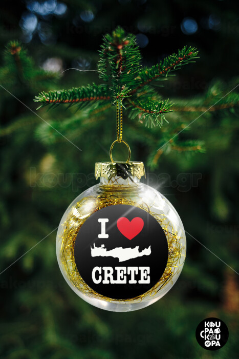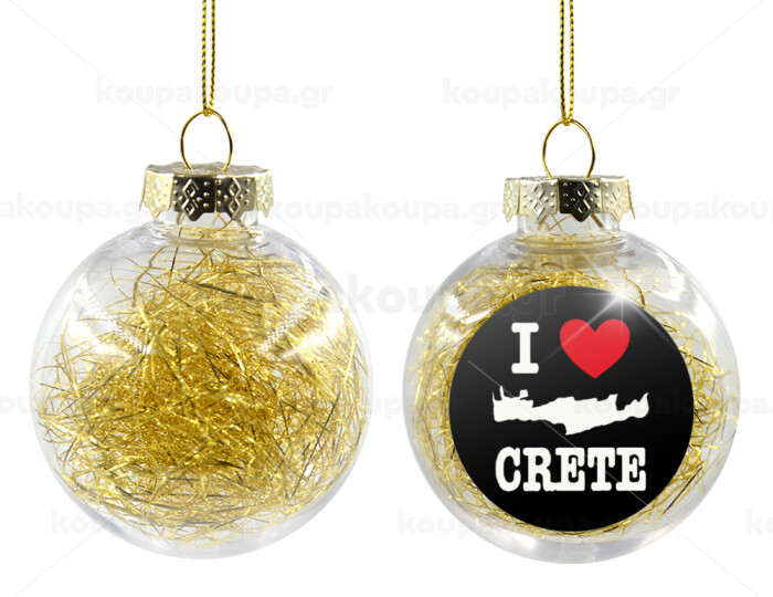 I Love Crete, Transparent Christmas tree ball ornament with gold filling 8cm