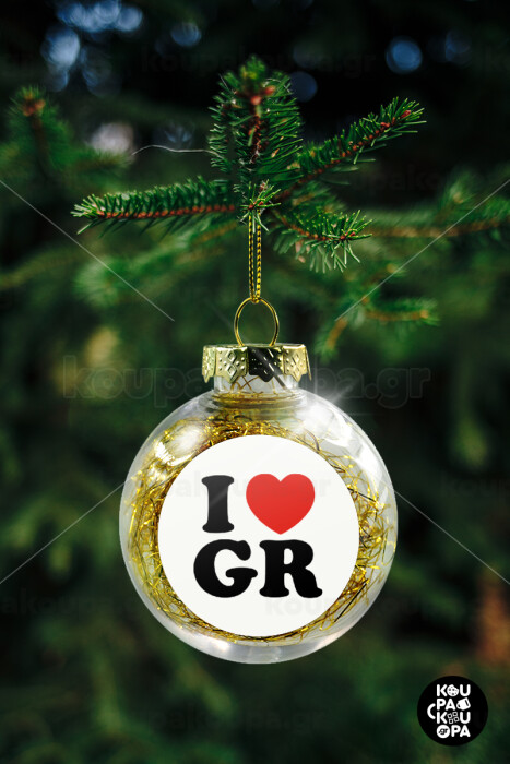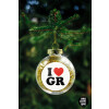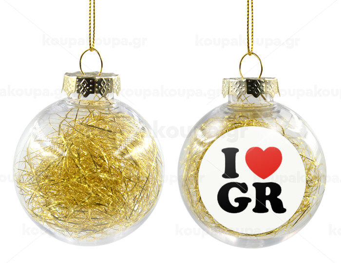 I Love GR, Transparent Christmas tree ball ornament with gold filling 8cm