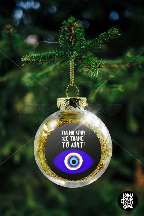Για να μην σε πιάνει το μάτι, Transparent Christmas tree ball ornament with gold filling 8cm