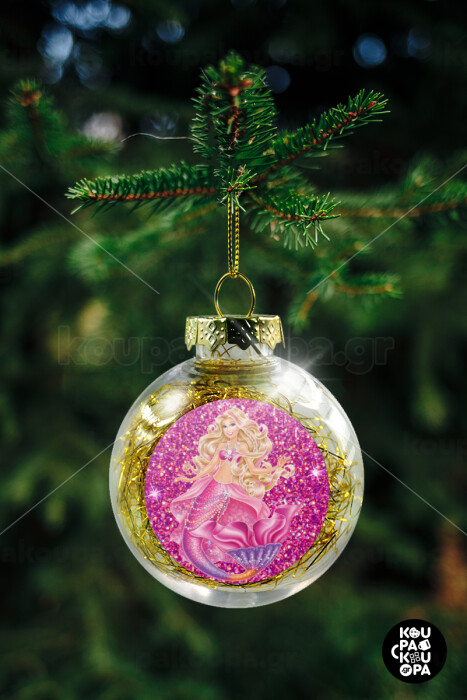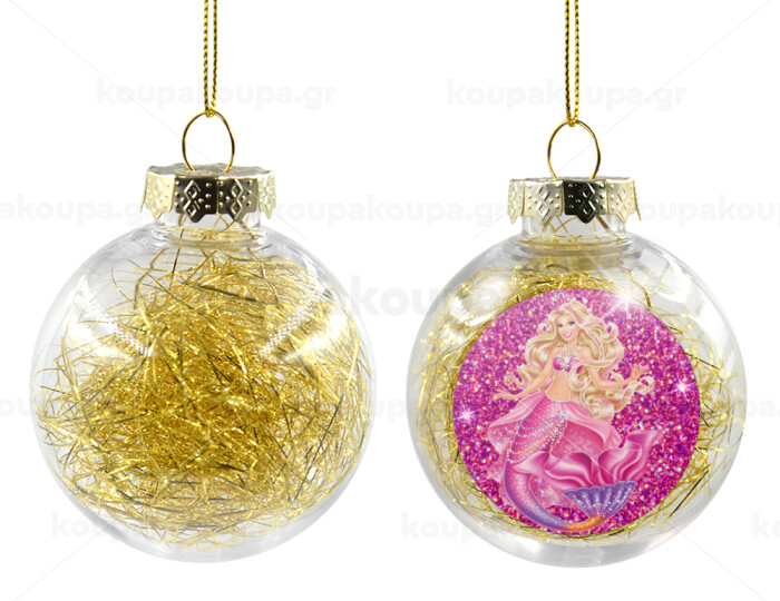 Barbie mermaid , Transparent Christmas tree ball ornament with gold filling 8cm