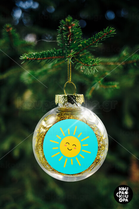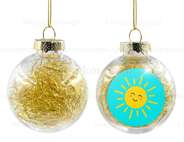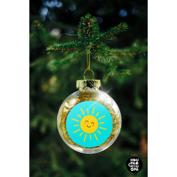 Happy sun, Transparent Christmas tree ball ornament with gold filling 8cm