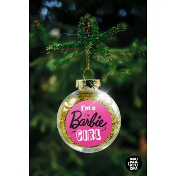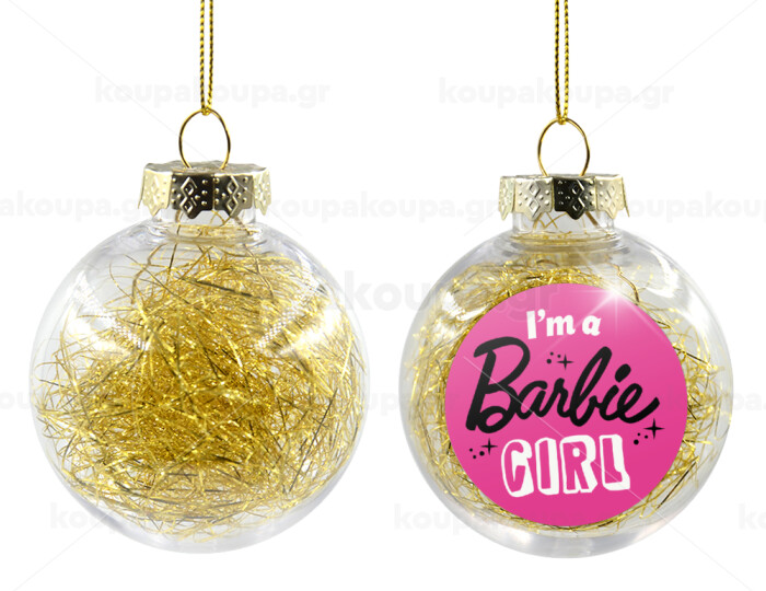 I'm Barbie girl, Transparent Christmas tree ball ornament with gold filling 8cm