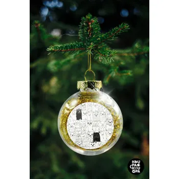 Γάτες γραμμικό σχέδιο, Transparent Christmas tree ball ornament with gold filling 8cm