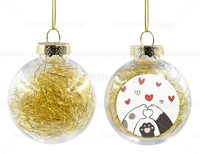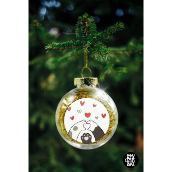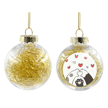 Cat paws, Transparent Christmas tree ball ornament with gold filling 8cm