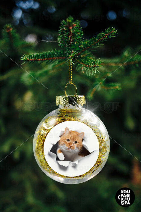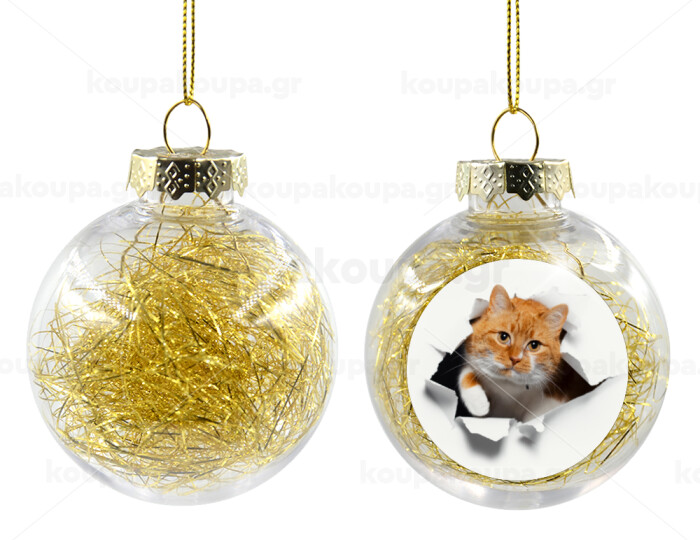 Cat cracked, Transparent Christmas tree ball ornament with gold filling 8cm