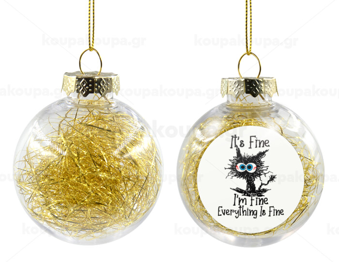 Cat, It's Fine I'm Fine Everything Is Fine, Transparent Christmas tree ball ornament with gold filling 8cm