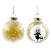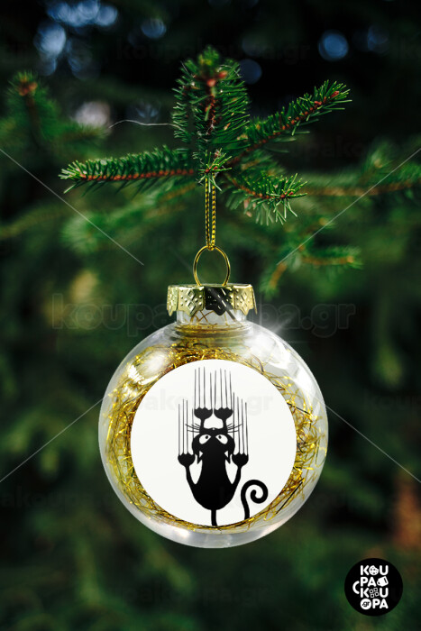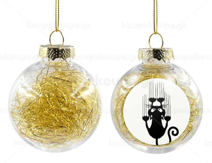 Cat scratching, Transparent Christmas tree ball ornament with gold filling 8cm