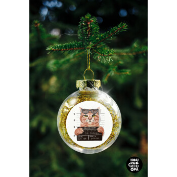 Cool cat, Transparent Christmas tree ball ornament with gold filling 8cm