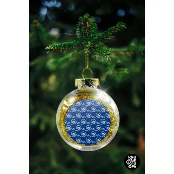 Blue Waves, Transparent Christmas tree ball ornament with gold filling 8cm