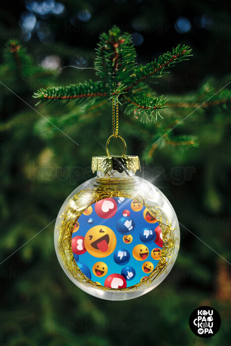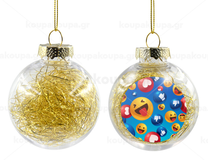 3D Emoji Collection, Transparent Christmas tree ball ornament with gold filling 8cm