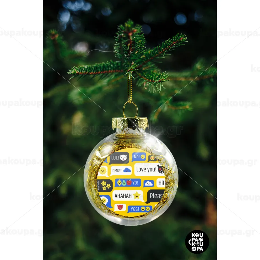 Emoji's text messages, Transparent Christmas tree ball ornament with gold filling 8cm