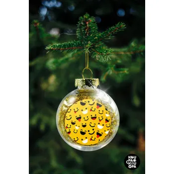 Smilies , Transparent Christmas tree ball ornament with gold filling 8cm