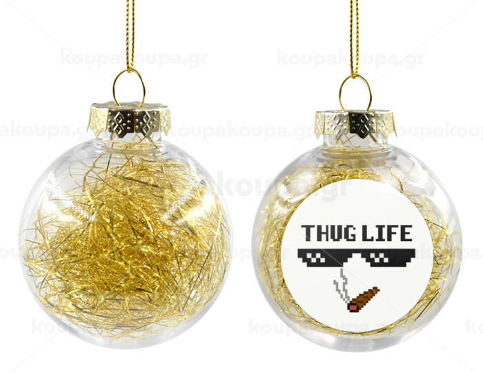 thug life, Transparent Christmas tree ball ornament with gold filling 8cm