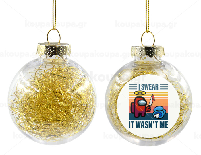 Among us, I swear it wasn't me, Transparent Christmas tree ball ornament with gold filling 8cm