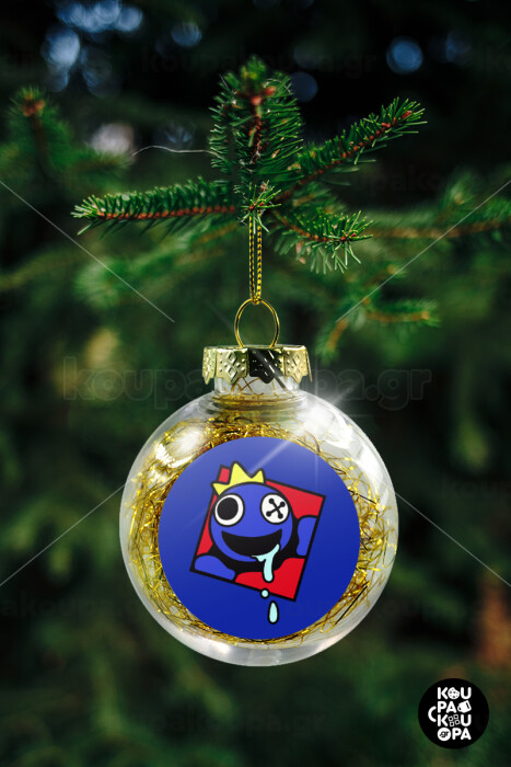Blue, Rainbow friends, Transparent Christmas tree ball ornament with gold filling 8cm