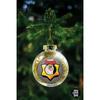 Brawl Stars Byron, Transparent Christmas tree ball ornament with gold filling 8cm