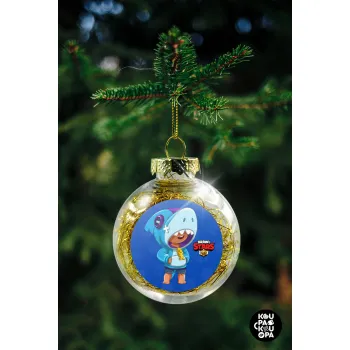 Brawl Stars Leon Shark, Transparent Christmas tree ball ornament with gold filling 8cm