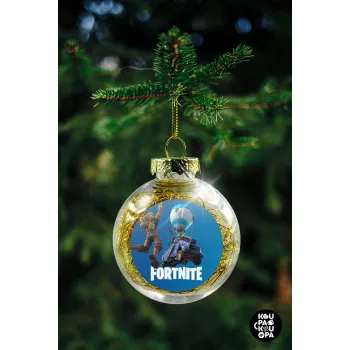 Fortnite Bus, Transparent Christmas tree ball ornament with gold filling 8cm