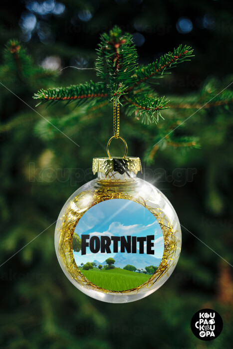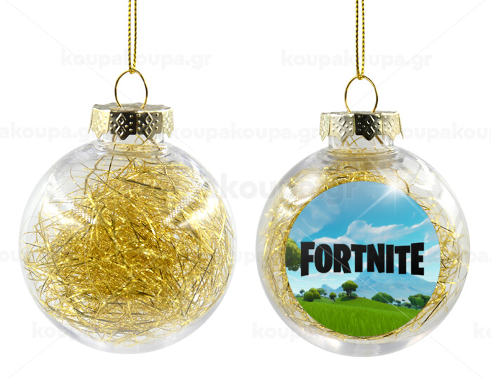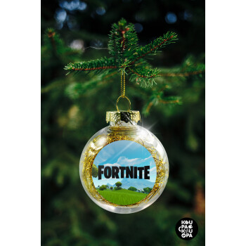 Fortnite landscape, Transparent Christmas tree ball ornament with gold filling 8cm
