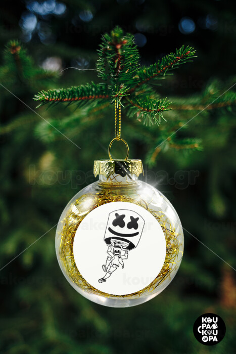 Fortnite Marshmello, Transparent Christmas tree ball ornament with gold filling 8cm